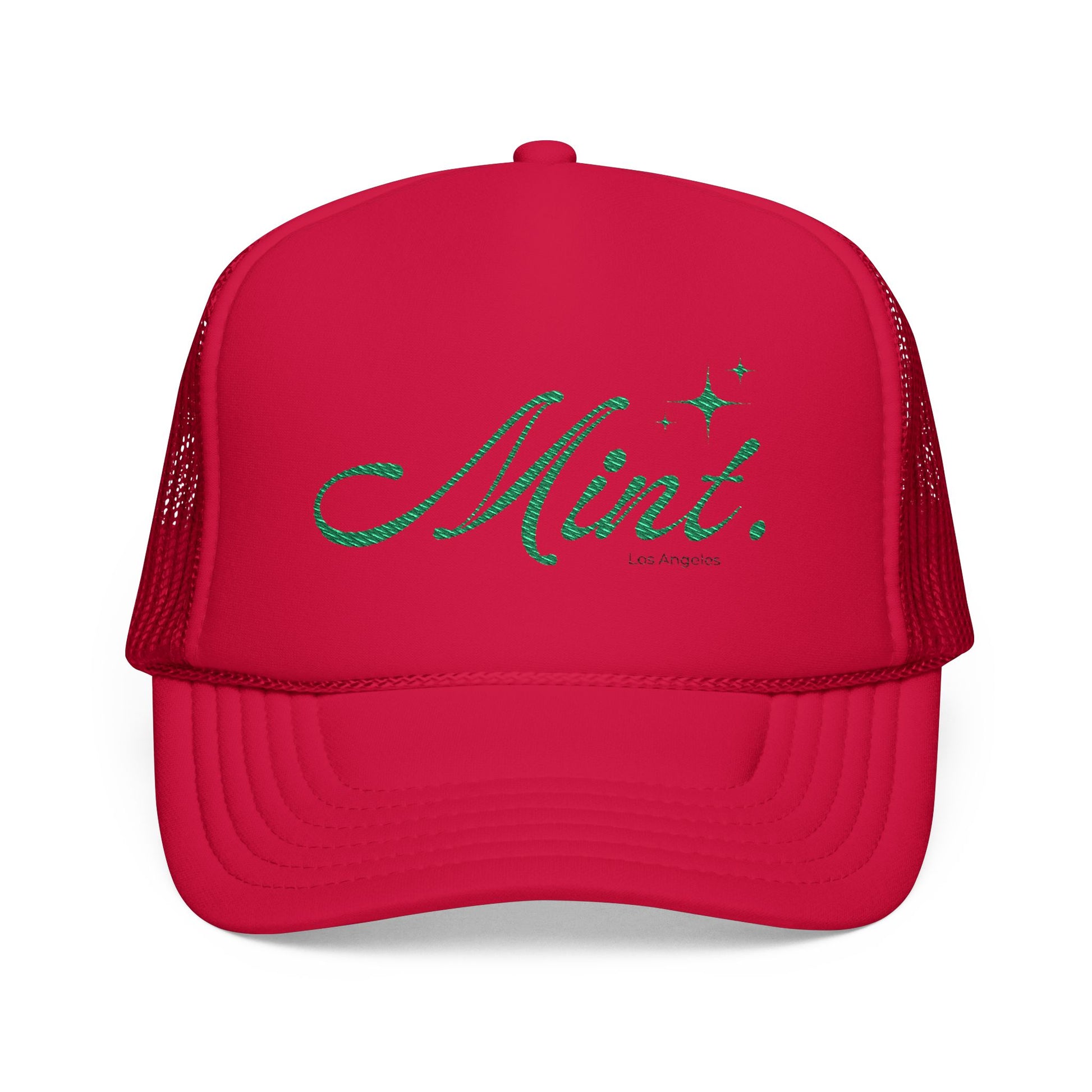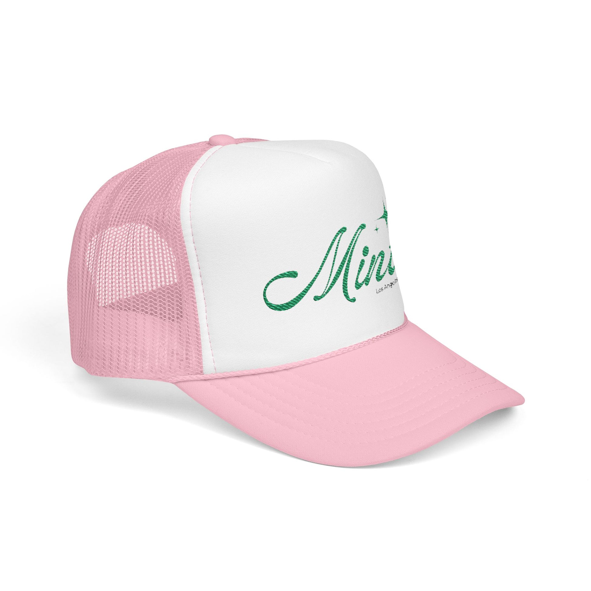 Light, bright, and a little nostalgic — this foam trucker hat carries a vintage sparkle with a modern edge. The seamless foam front showcases a mint-green embroidered script and tiny star accents that catch the eye without shouting. Breathable mesh at the back keeps you cool on sunny walks, while the pre-curved visor and structured high-profile silhouette give the hat a confident, lived-in look. It slips on with an adjustable snap and settles into whatever weekend plans you have — beachside cafés, farmers’ markets, or late-afternoon drives with the windows down. Wear it when you want an approachable pop of color and subtle shimmer that feels effortlessly put together.